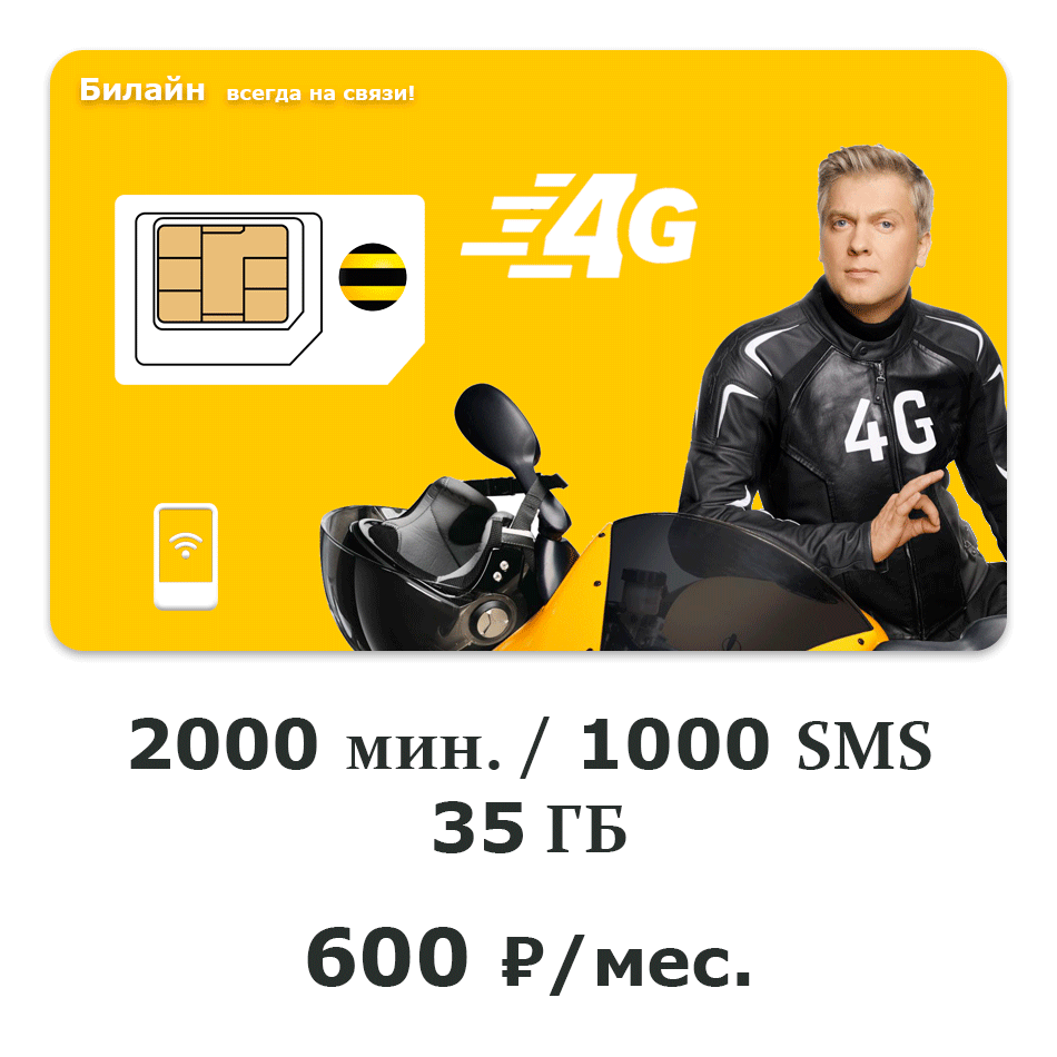 - Трафик: 35 ГБ интернет (безлимит в сетях 4G / LTE)